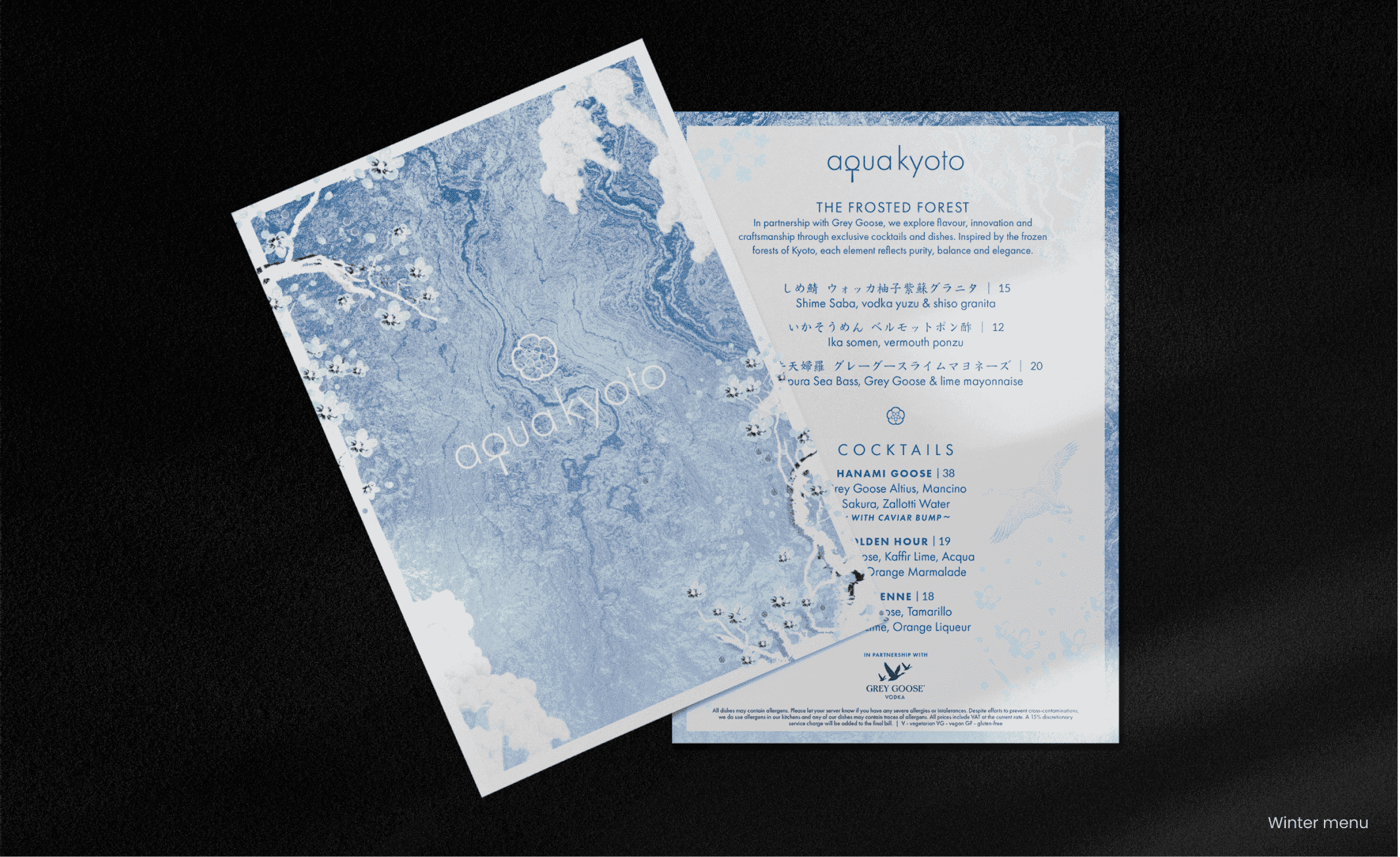 The crest was adopted across Aqua Kyoto locations globally, becoming a consistent brand element used across marketing materials and interior spaces in London, New York and Hong Kong.